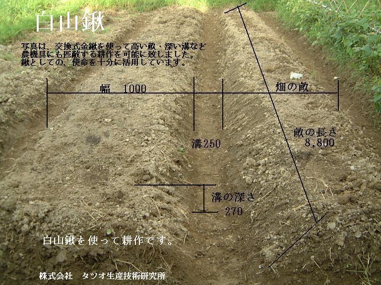 東京の展示会に小社が出品し、実用新案の鍬を展示風景 農具鍬をつかいながら、試験農場にて耕作